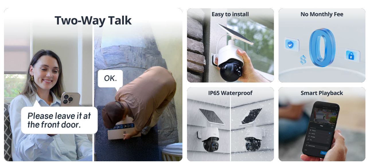 Experience crystal-clear 4K Ultra HD, 24/7 recording, and AI-powered night vision. With solar panel support, local storage, and no monthly fees